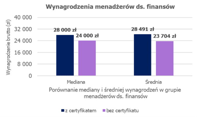 - Menedżerowie ds. finansów z certyfikatem zarabiają 16,7% więcej (28 000 zł vs. 24 000 zł)